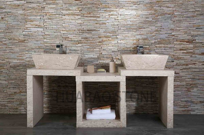 These sleek and simple stone bathroom sinks can be fitted in a variety of fashions. Save floor space with a wall mounted setup that positions the sink bowl on a shelf of solid oak, marble or pristine glass. If you prefer, select a countertop basin with a freestanding vanity unit and benefit from the storage space below to stock your bathroom with towels and toiletries.